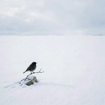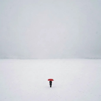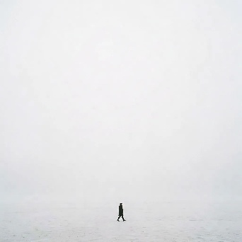 photographic negative space: a tiny subject drowning in vast, empty surroundings.