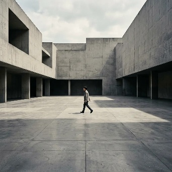 | Gemini | A minimalist negative space photograph in a square frame. A massive, sheer, dark gray concrete wall, textured like brushed metal, fills 90% of the image from the left. In the bottom-right corner, a perfect, small circular void is cut through the wall. Within this tiny circle, a vibrant, detailed oasis with a miniature palm tree, a sliver of blue water, and soft white light is visible, suggesting an entire hidden world. The light from the oasis spills slightly onto the edges of the circle, contrasting sharply with the cold, vast concrete. High-resolution, architectural, cinematic lighting. | A minimalist negative space conceptual image in a square frame. The vast majority of the composition is a clean, featureless, warm white surface. In the bottom-right quadrant, a small, intricate geometric keyhole shape is rendered in deep indigo blue. Through this tiny keyhole, a swirling, vibrant nebula of pink, blue, and gold cosmic dust is visible, suggesting an entire universe contained within. The light source comes subtly from the keyhole, casting an ethereal glow. 8k resolution, precise lines, macro photography feel, high contrast. | A minimalist negative space conceptual image. A massive, textured concrete wall, dark grey and rough, dominates the left 80% of the square frame. On the far right, a thin vertical sliver of blindingly bright, warm orange light reveals a stylized silhouette of a young woman reaching up towards the light. The woman is formed by the empty space within the sliver, while the surrounding wall casts a deep shadow. High contrast, architectural, melancholic yet hopeful atmosphere, 8k resolution. | A minimalist negative space composition in a square frame. A massive, sheer, textured concrete wall filling 90% of the left and center space, dominates the image. In the upper-right corner, a single, sharp, geometric triangle of deep cerulean blue sky is visible. Within this blue triangle, a tiny, crisp white paper airplane is captured in perfect profile, soaring. The scale makes the airplane minuscule against the brutalist architecture. High contrast, architectural photography, sharp lines. | A minimalist masterpiece of negative space in a square composition. The entire frame is a vast, unblemished, matte white canvas. Centered, there is a tiny, precise, highly polished silver sphere. Below and slightly to the left of the sphere, a minuscule, realistic black ant is captured mid-step, looking towards the sphere. The ant casts a microscopic, sharp shadow on the white surface. The texture of the silver sphere contrasts with the subtle texture of the white space. The feeling is one of immense isolation and scale. High resolution, macro detail on the ant, perfectly clean background. |