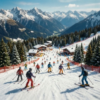 tilt shift photo alpine ski resort