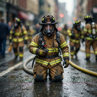 tilt shift photo of fire fighting