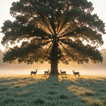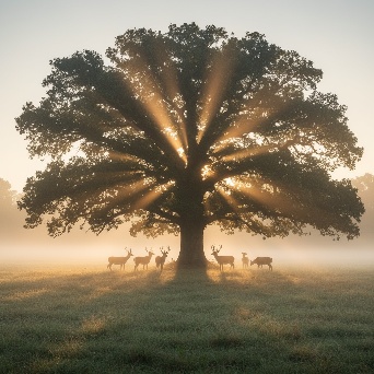 | Reference | Image by liutyi using Ovis-Image A majestic ancient oak tree standing alone in an open meadow at sunrise, its wide canopy filling the frame. Warm golden sunlight streams through the dense leaves, creating dramatic sun rays and god rays in soft morning mist. Several deer stand calmly beneath and around the tree, partially silhouetted by the light. The ground is covered in dewy grass with gentle fog hovering near the surface. Cinematic, tranquil, and ethereal atmosphere, soft haze, natural colors, high dynamic range, ultra-detailed, realistic nature photography, shallow depth of field, volumetric lighting, rule of thirds composition, peaceful wildlife scene. | Image by liutyi using Z Image Turbo A serene mountain range shrouded in soft morning fog, rendered in delicate layers with subtle gradients of light blue tones - ranging from pale sky-blue at the peaks to deeper cerulean near the valleys. Mist curls gently around jagged ridges and hidden forested slopes, creating ethereal depth. The scene is bathed in diffused dawn light filtering through low-hanging clouds, casting quiet shadows and luminous highlights across snow-dusted summits and mossy rock faces. Minimalist composition emphasizes tranquility; distant peaks fade into atmospheric haze, evoking solitude and calm. Mood: peaceful, dreamlike, untouched nature. Style: minimalist realism with painterly texture and muted palette. |