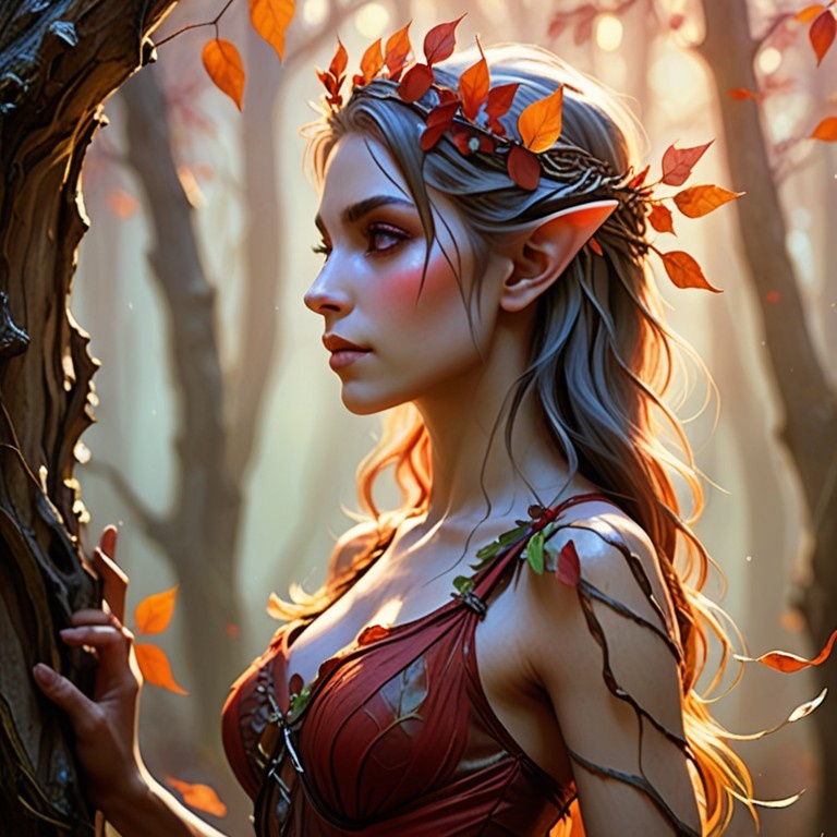 Prompt: VibrantlySharp style, 3pic_vist4, animeniji, in a soft-focus painterly concept art style Upper body profile view, autumn dryad elf adorned in translucent red foliage and bark-textured silk, wind animating her hair and dress into motion, background: ancient twilight forest, distant amber sunlight diffused through fog and drifting leaves. Parameters: Steps: 40| Size: 768x768| Seed: 2224766729| CFG scale: 6| Model: dreamshaper_8| Model hash: 879db523c3| App: SD.Next| Version: 4491d26| Operations: txt2img| Pipeline: StableDiffusionPipeline Time: 12m 12.06s | pipeline 712.83 decode 18.90 preview 0.82 move 0.31 prompt 0.30 | RAM 12.85 GB 14% | Prompt: VibrantlySharp style, 3pic_vist4, animeniji, in a soft-focus painterly concept art style Upper body profile view, autumn dryad elf adorned in translucent red foliage and bark-textured silk, wind animating her hair and dress into motion, background: ancient twilight forest, distant amber sunlight diffused through fog and drifting leaves. Parameters: Steps: 40| Size: 768x768| Seed: 2224766729| CFG scale: 6| Model: dreamshaper_8| Model hash: 879db523c3| App: SD.Next| Version: 4491d26| Operations: txt2img| Pipeline: StableDiffusionPipeline Time: 3m 45.13s | pipeline 203.67 decode 21.43 preview 1.74 | RAM 7.65 GB 8% |