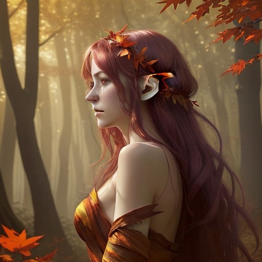Prompt: VibrantlySharp style, 3pic_vist4, animeniji, in a soft-focus painterly concept art style Upper body profile view, autumn dryad elf adorned in translucent red foliage and bark-textured silk, wind animating her hair and dress into motion, background: ancient twilight forest, distant amber sunlight diffused through fog and drifting leaves. Parameters: Steps: 50| Size: 512x512| Seed: 3344181143| CFG scale: 5| Model: dreamshaper_8| Model hash: 879db523c3| App: SD.Next| Version: 4491d26| Operations: txt2img| Pipeline: StableDiffusionPipeline Time: 5m 25.51s | pipeline 316.75 decode 8.47 preview 0.96 move 0.28 prompt 0.27 | RAM 8.98 GB 10% | Prompt: VibrantlySharp style, 3pic_vist4, animeniji, in a soft-focus painterly concept art style Upper body profile view, autumn dryad elf adorned in translucent red foliage and bark-textured silk, wind animating her hair and dress into motion, background: ancient twilight forest, distant amber sunlight diffused through fog and drifting leaves. Parameters: Steps: 40| Size: 512x512| Seed: 2224766729| CFG scale: 6| Model: dreamshaper_8| Model hash: 879db523c3| App: SD.Next| Version: 4491d26| Operations: txt2img| Pipeline: StableDiffusionPipeline Time: 51.34s | pipeline 42.56 decode 8.47 move 0.30 prompt 0.30 | RAM 7.02 GB 7% |