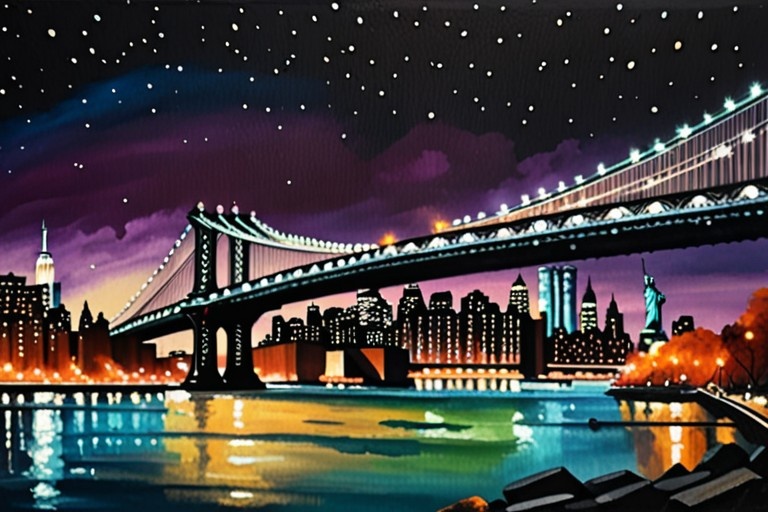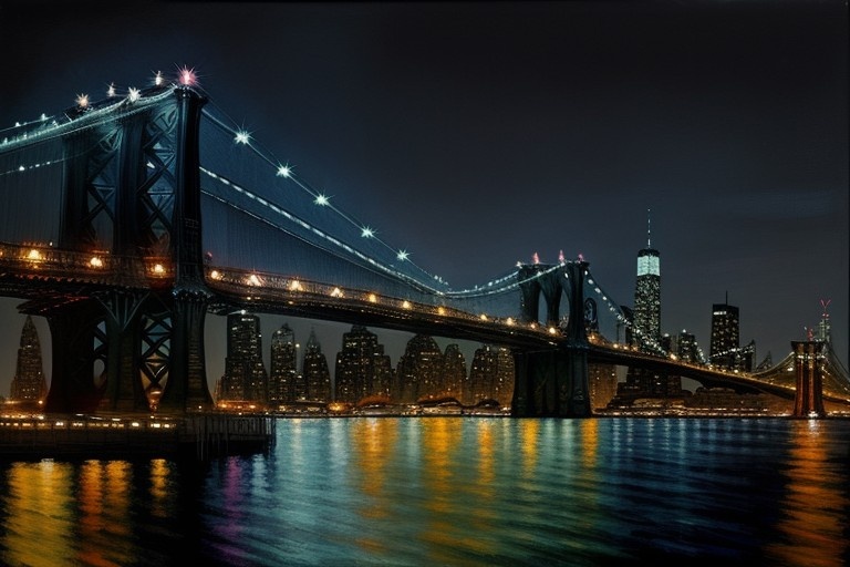 dreamshaper_8 CPU | 768x512 | Prompt: New York night cityscape with Manhattan bridge. Realistic masterpiece painting Negative: watermarks, text, signature Parameters: Steps: 20| Size: 768x512| Sampler: DPM++ 2M SDE| Seed: 501711785| CFG scale: 6| Model: dreamshaper_8| Model hash: 879db523c3| App: SD.Next| Version: 87e6d3f| Operations: txt2img| Pipeline: StableDiffusionPipeline Execution: Time: 3m 23.52s | pipeline 191.27 decode 12.23 preview 0.70 | RAM 15.92 GB 17% |