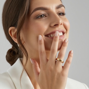 Prompt: photorealistic girl in bookshop choosing the book in romantic stories shelf. smiling
