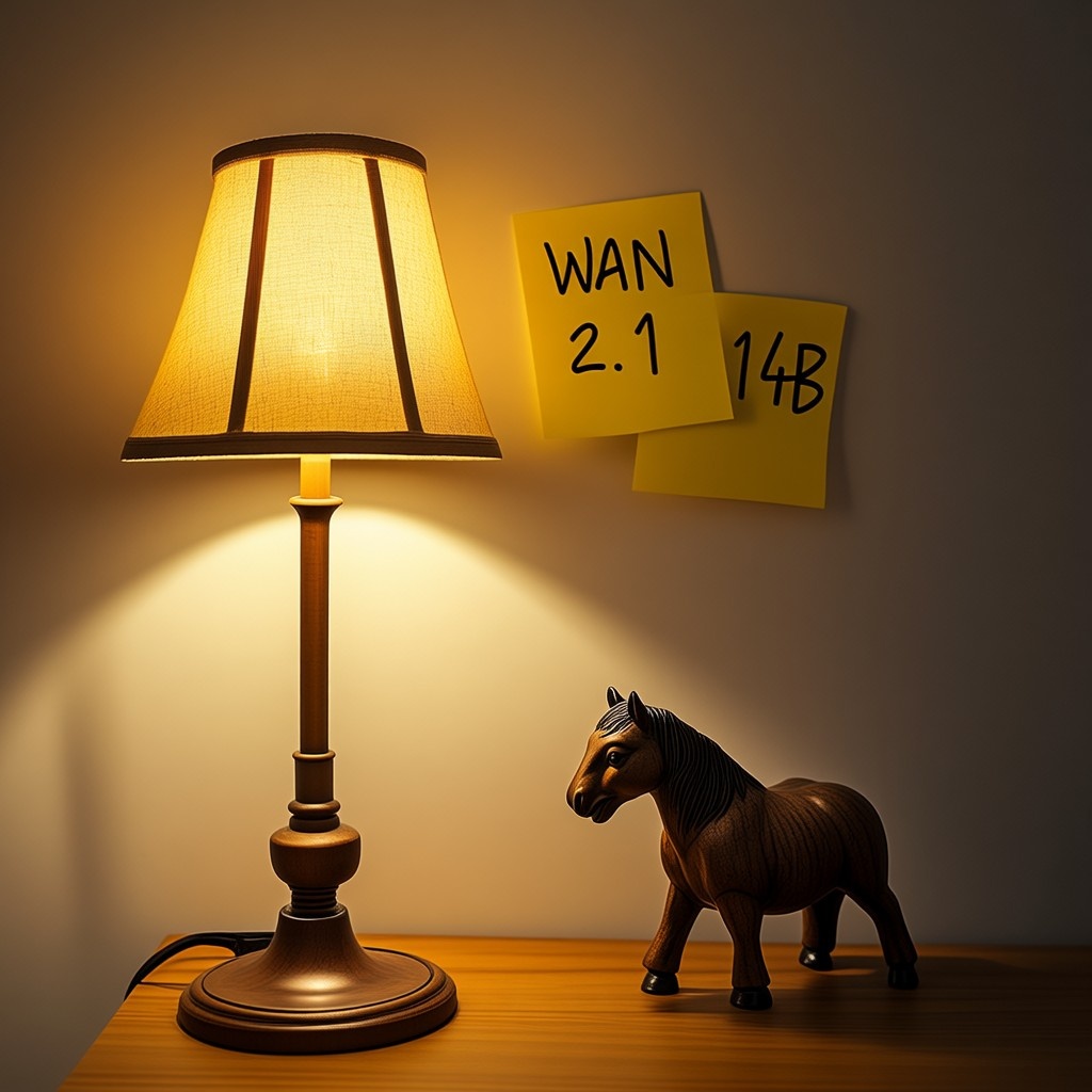 Prompt: Origami horse under light of old-school desktop lamp on the table of Chinese kid. Yellow post-it note on the wall contain handwritten text "WAN 2.1 14B" Parameters: Steps: 20| Size: 1024x1024| Seed: 2329959261| CFG scale: 3.5| CFG true: 3.5| App: SD.Next| Version: 6e33723| Pipeline: WanPipeline| Operations: txt2img| Model: Wan2.1-T2V-14B-Diffusers Time: 27m 9.71s | total 1673.73 pipeline 1622.66 offload 16.03 preview 13.33 vae 9.54 pre 7.02 te 3.22 gc 1.89 | GPU 40052 MB 31% | RAM 29.67 GB 24% | Prompt: Origami horse under light of old-school desktop lamp on the table of Chinese kid. Yellow post-it note on the wall contain handwritten text "WAN 2.1 1.3B" Parameters: Steps: 20| Size: 1024x1024| Seed: 2329959261| CFG scale: 6| CFG true: 6| App: SD.Next| Version: 6e33723| Pipeline: WanPipeline| Operations: txt2img| Model: Wan2.1-T2V-1.3B-Diffusers Time: 3m 48.61s | total 427.12 pipeline 228.56 preview 191.61 te 2.01 offload 1.92 gc 1.88 vae 1.10 | GPU 19118 MB 15% | RAM 3.07 GB 2% |