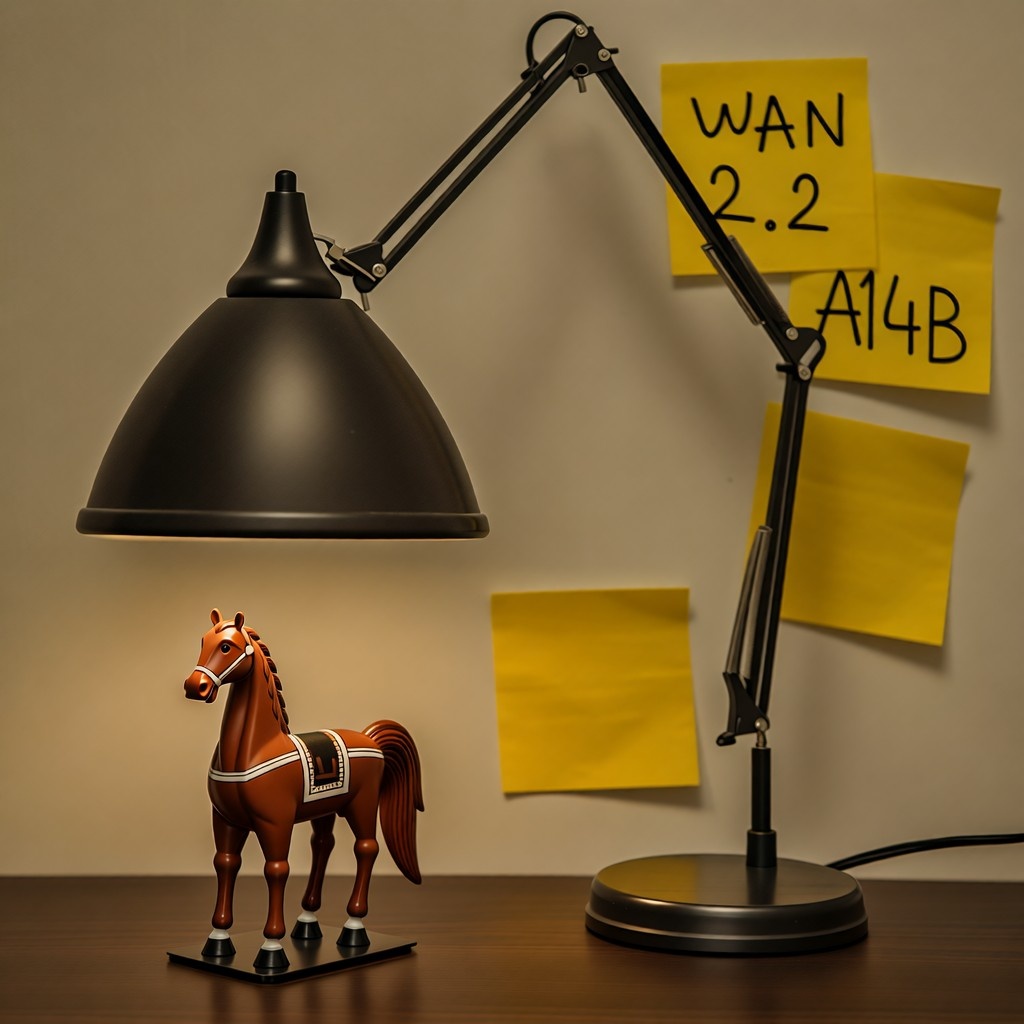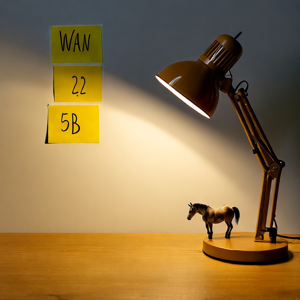 Prompt: Origami horse under light of old-school desktop lamp on the table of Chinese kid. Yellow post-it note on the wall contain handwritten text "WAN 2.2 A14B" Parameters: Steps: 20| Size: 1024x1024| Seed: 1896759638| CFG scale: 6| App: SD.Next| Version: 85d494e| Pipeline: WanPipeline| Operations: txt2img| Model: Wan2.2-T2V-A14B-Diffusers Time: 27m 55.18s | total 1746.19 pipeline 1658.74 offload 34.56 vae 18.79 pre 16.40 preview 12.24 te 3.53 gc 1.89 | GPU 67528 MB 53% | RAM 55.75 GB 44% | Prompt: Origami horse under light of old-school desktop lamp on the table of Chinese kid. Yellow post-it note on the wall contain handwritten text "WAN 2.2 5B" Parameters: Steps: 50| Size: 1024x1024| Seed: 1896759638| CFG scale: 6| CFG true: 6| App: SD.Next| Version: fbc50ce| Pipeline: WanPipeline| Operations: txt2img| Model: Wan2.2-TI2V-5B-Diffusers |