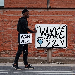 Prompt: Young asian looking at the road sign with text "Attention guidance 4". He is just finish a bright graffiti "QWEN IMAGE" on a brick wall with leftover of plaster. Dark grey asphalt on a sidewalk below. Building number sign with text "20B" is half pained by the graffiti. Parameters: Steps: 50| Size: 928x928| Seed: 3312083922| CFG scale: 4| CFG true: 4| App: SD.Next| Version: abddac2| Pipeline: QwenImagePipeline| Operations: txt2img| Model: Qwen-Image | Prompt: Young Asian holding in both hands a sign "16 STEPS ⚡" at the right. Behind him road sign with text "Attention guidance 4". He is just finish a bright graffiti "QWEN IMAGE" on a brick wall with leftover of plaster. Dark grey asphalt on a sidewalk below. Building number sign with text "20B" is half pained by the graffiti. Parameters: Steps: 16| Size: 928x928| Seed: 3312083922| CFG scale: 4| CFG true: 4| App: SD.Next| Version: abddac2| Pipeline: QwenImagePipeline| Operations: txt2img| Model: Qwen-Lightning |